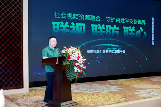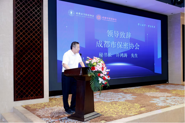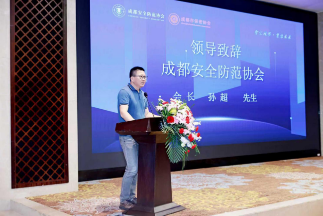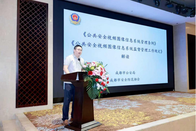 由成都安全防范协会会长孙超、成都保密协会秘书长许鸿涛、成都公安局信息技术研究所所长赵敬千对此次交流会进行致辞,对当前公共视频图像安全形式进行分析并对国务院及公安部下达的相关文件进行简述。