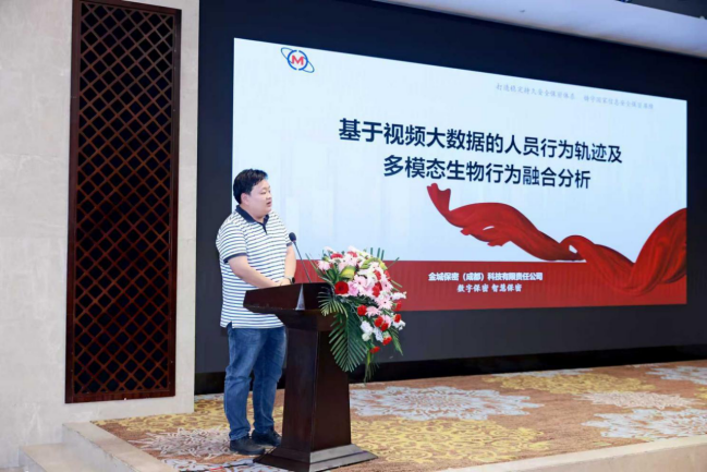 由金城保密科技有限责任公司解决方案中心总经理张博对基于视频大数据的人员行为轨迹及多模态生物行为融合分析进行详细介绍。
