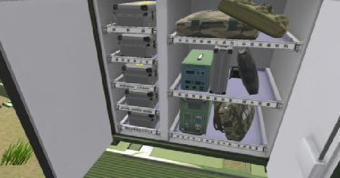 “某型野战抢修平台训练系统”使用VR技术构建,可以通过VR头盔对虚拟场景中的抢修平台各个部件,修理工具进行操作使用,并在虚拟的战场环境中完成对不同毁伤部位的抢修操作考核。